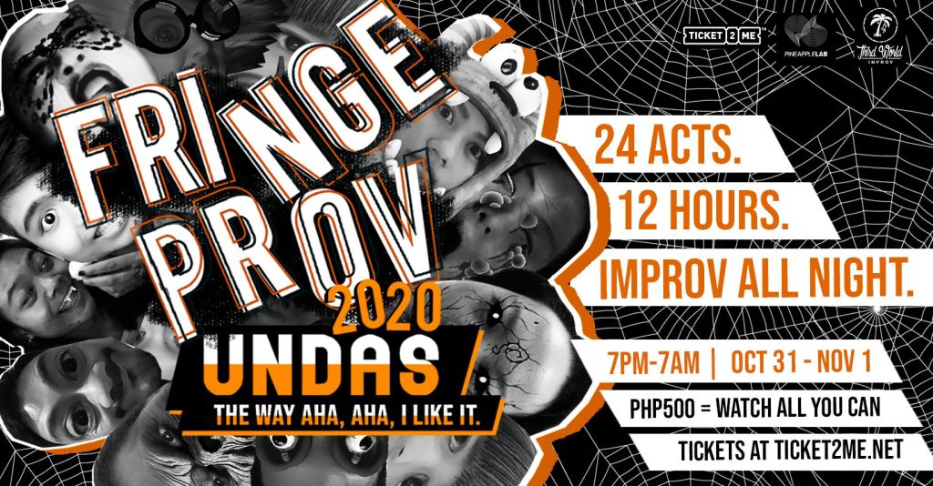 Fringeprov is a 12-hour improv marathon from 7PM to 7AM—yes, buong gabi yan! Now on its 7th year, it’s a fun, open playground for 24+ improv acts to try something new, wild, heartfelt, hilarious, or totally out of the box.
